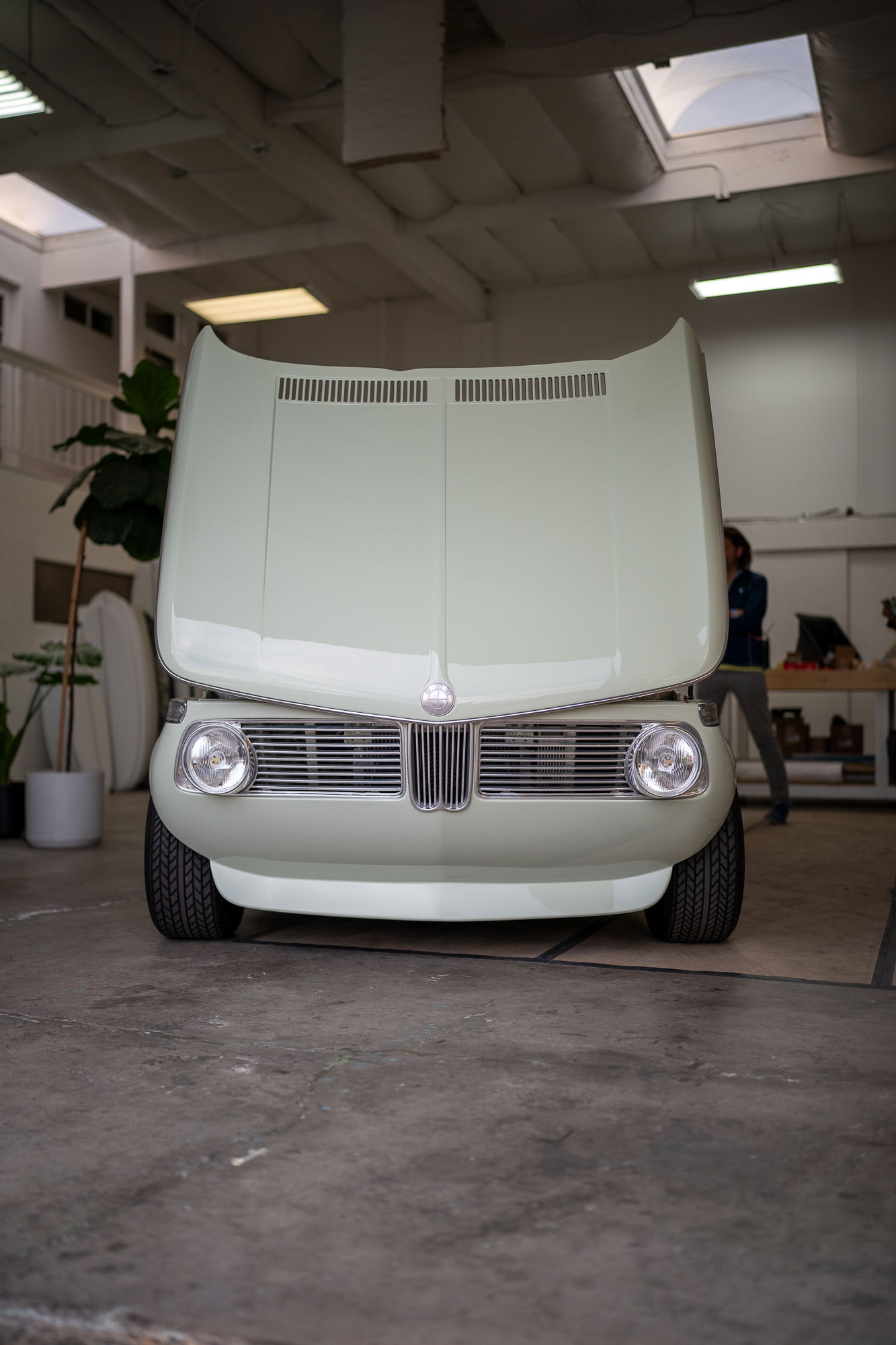 Tucked away in an industrial park alleyway, you’ll find Son of Cobra. They’re a manufacturer of surfboards and 2002 BMW carbon fiber parts. To show off their chops, they had a seafoam green BMW 2002 on display with their full array of carbon parts. Their attention to detail is off the charts.