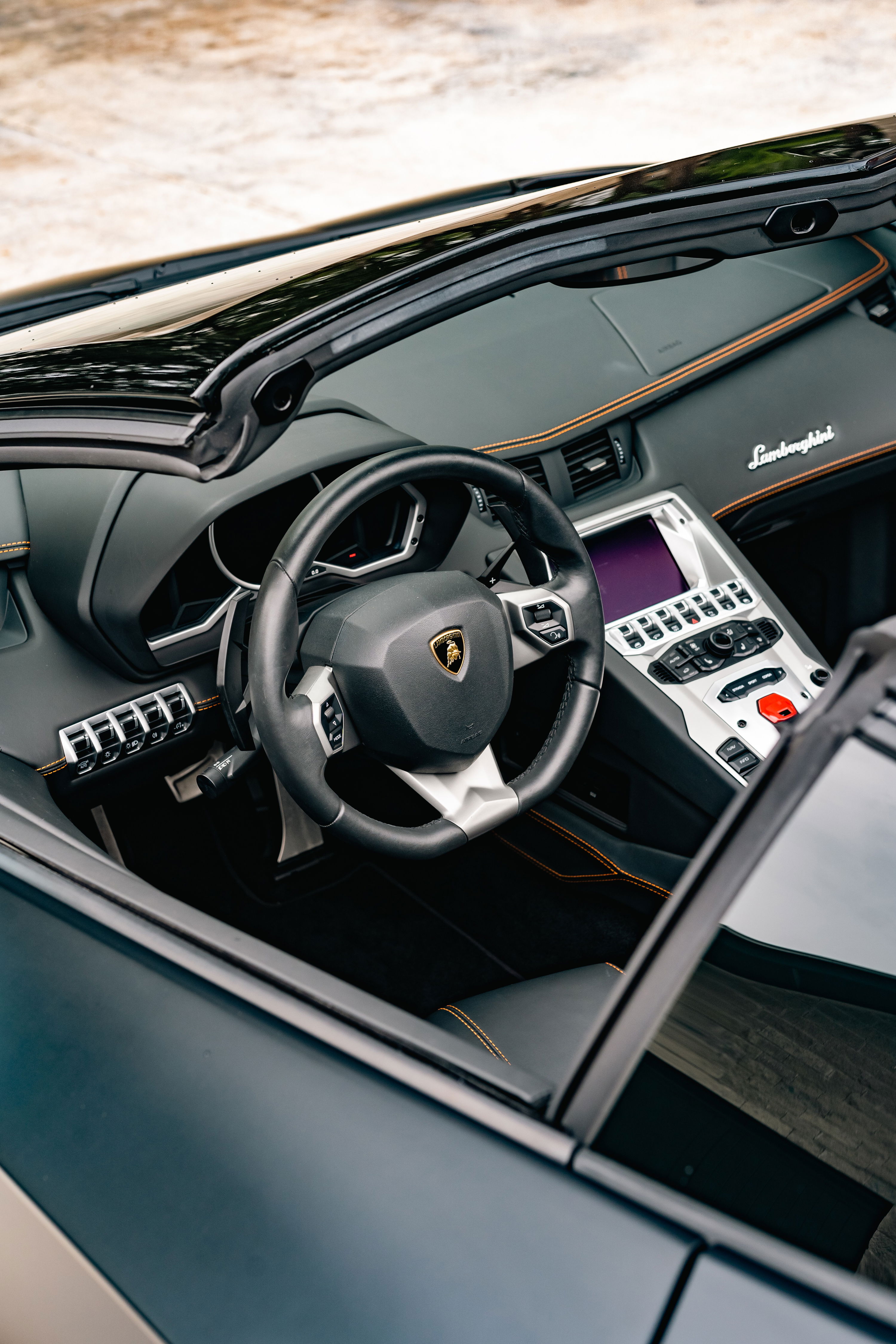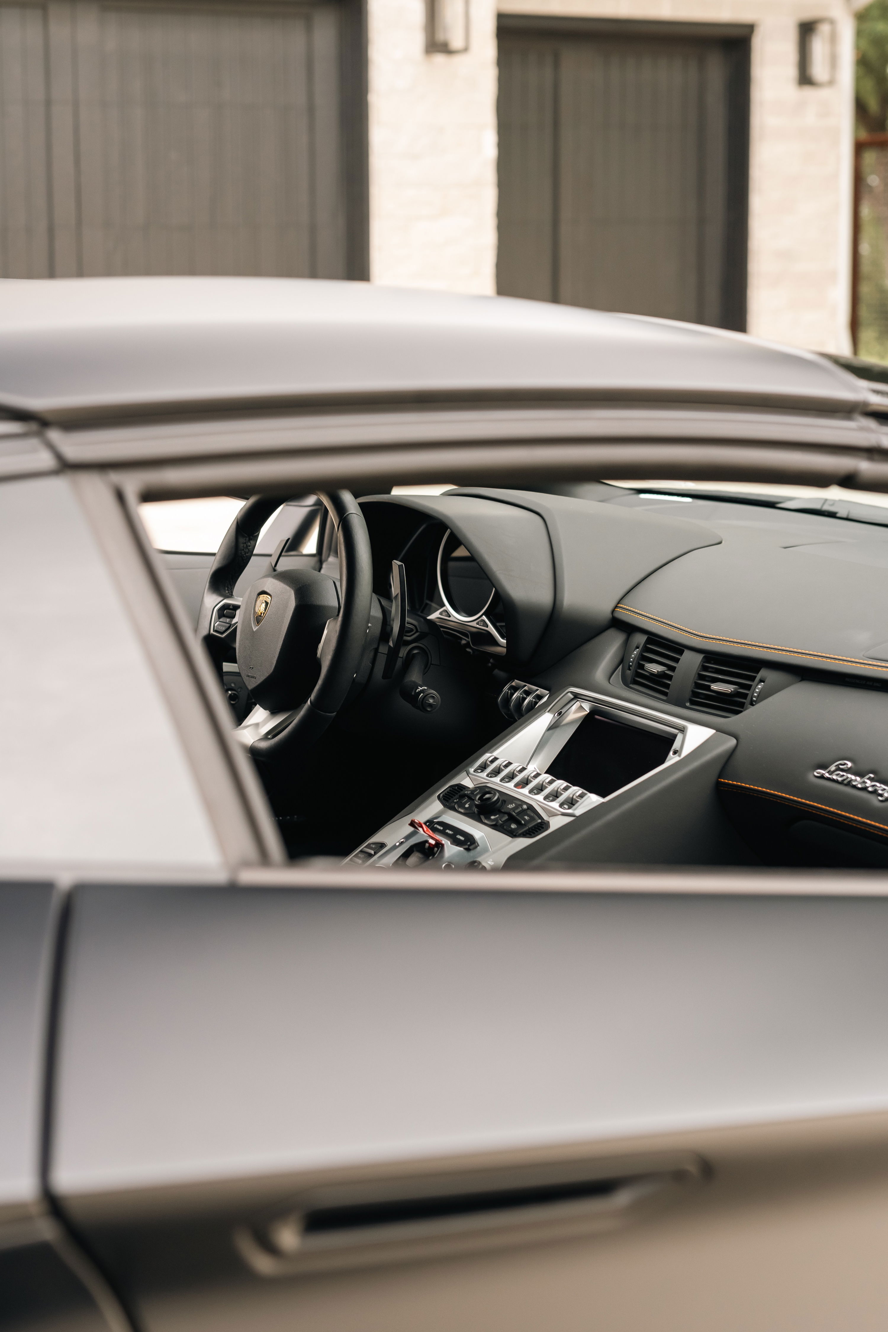 Matte black paint, orange accents and a 691hp 6.5L V12. This Aventador LP700-4 in Dripping Springs is a stunner.