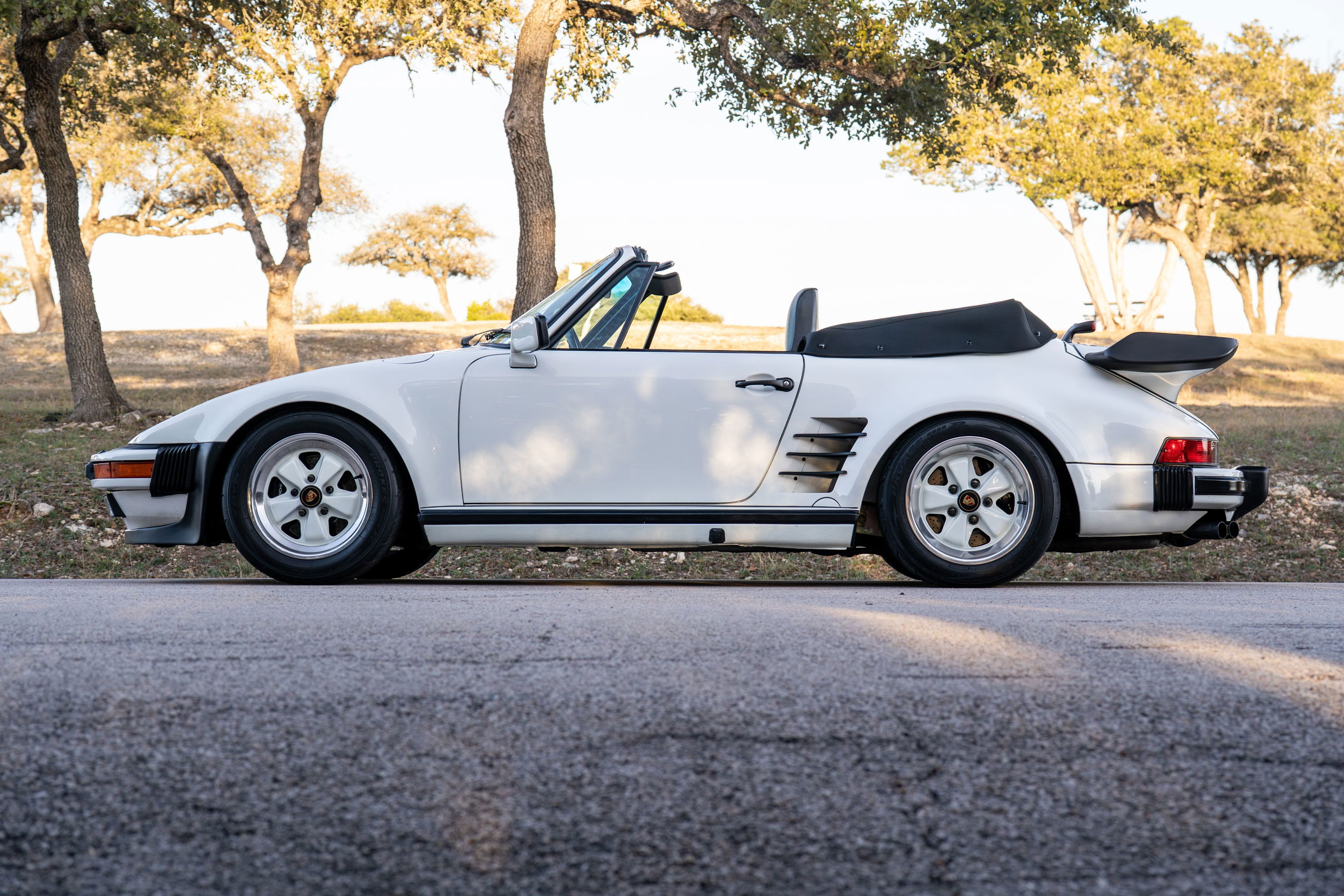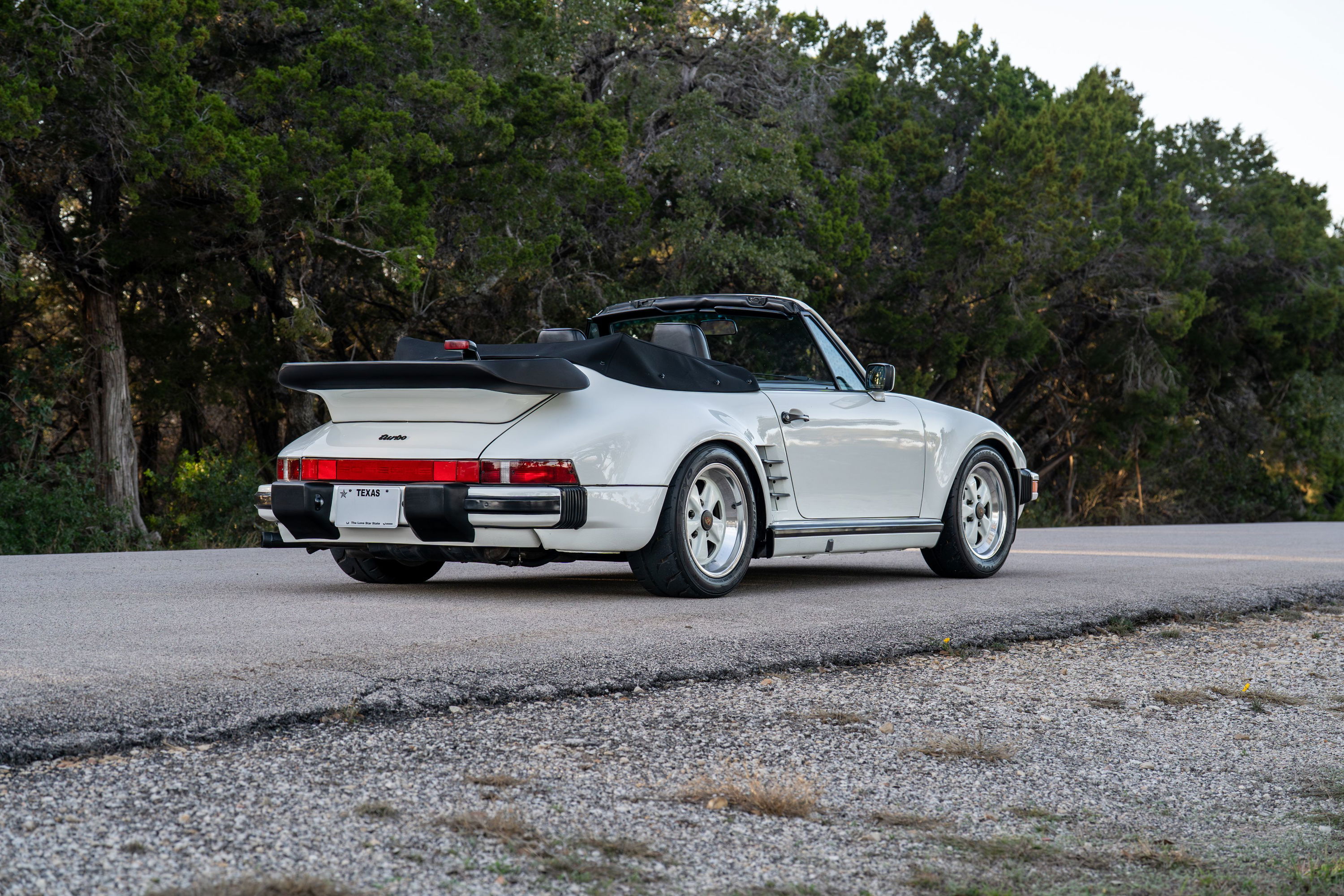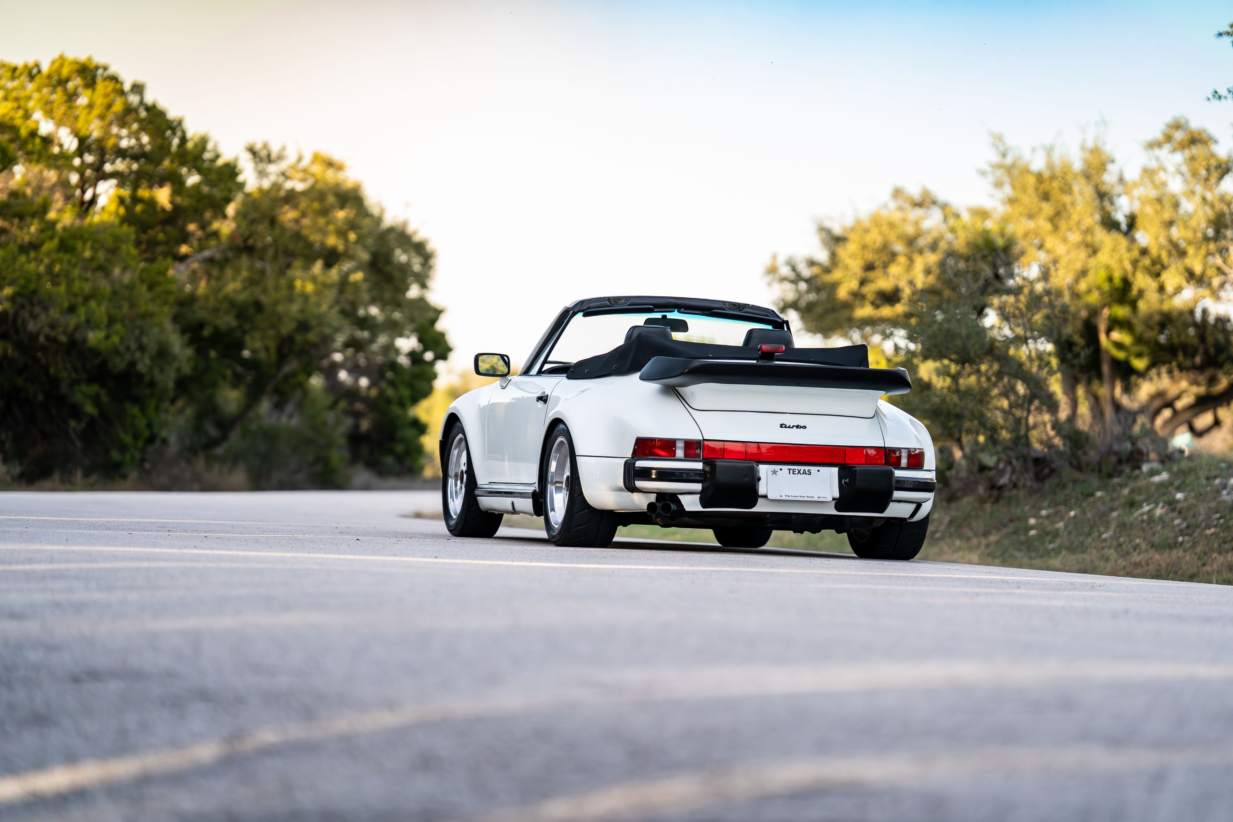 A Rare White Porsche Slantnose 930 Turbo Cabriolet Cruising Sunny Austin, TX