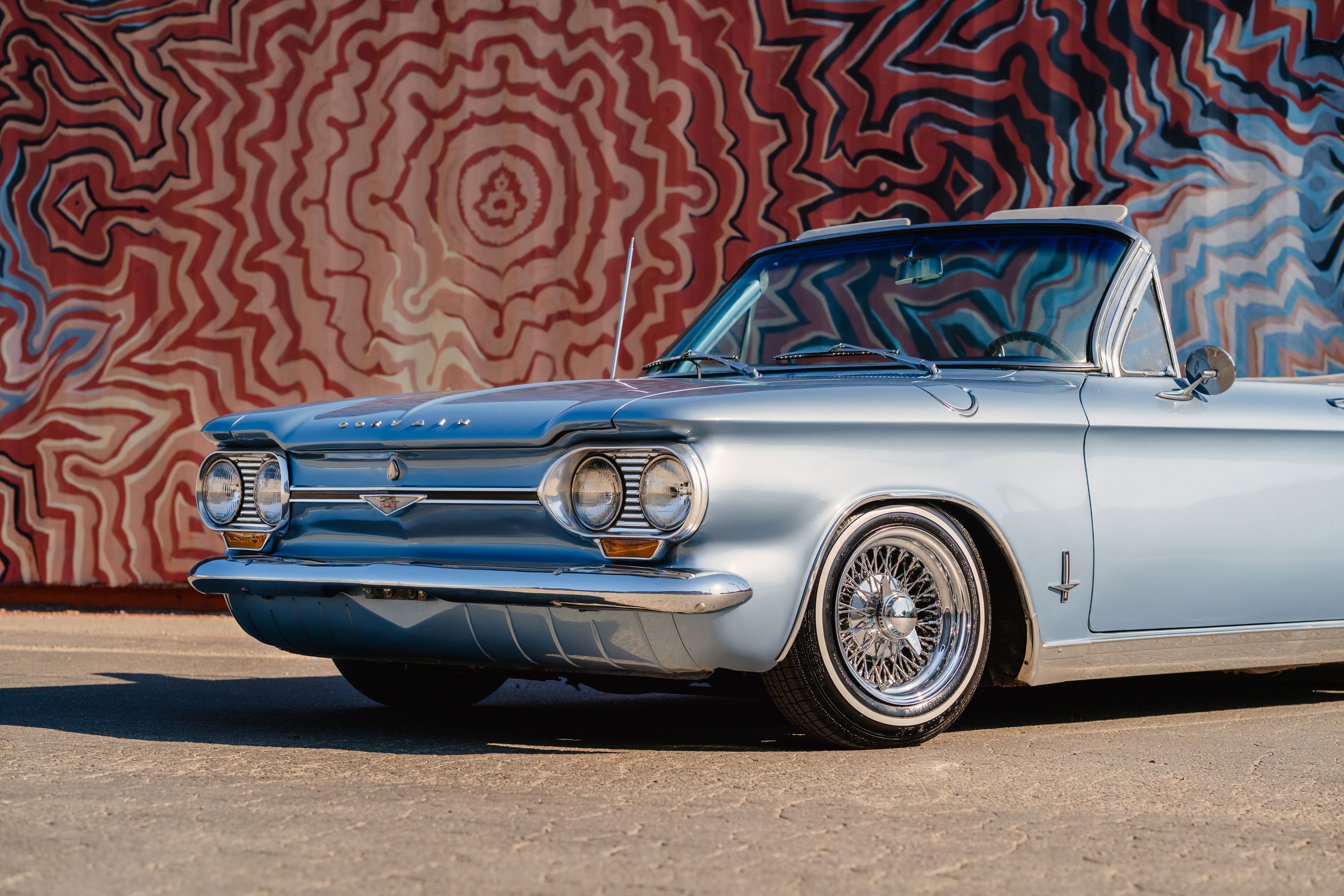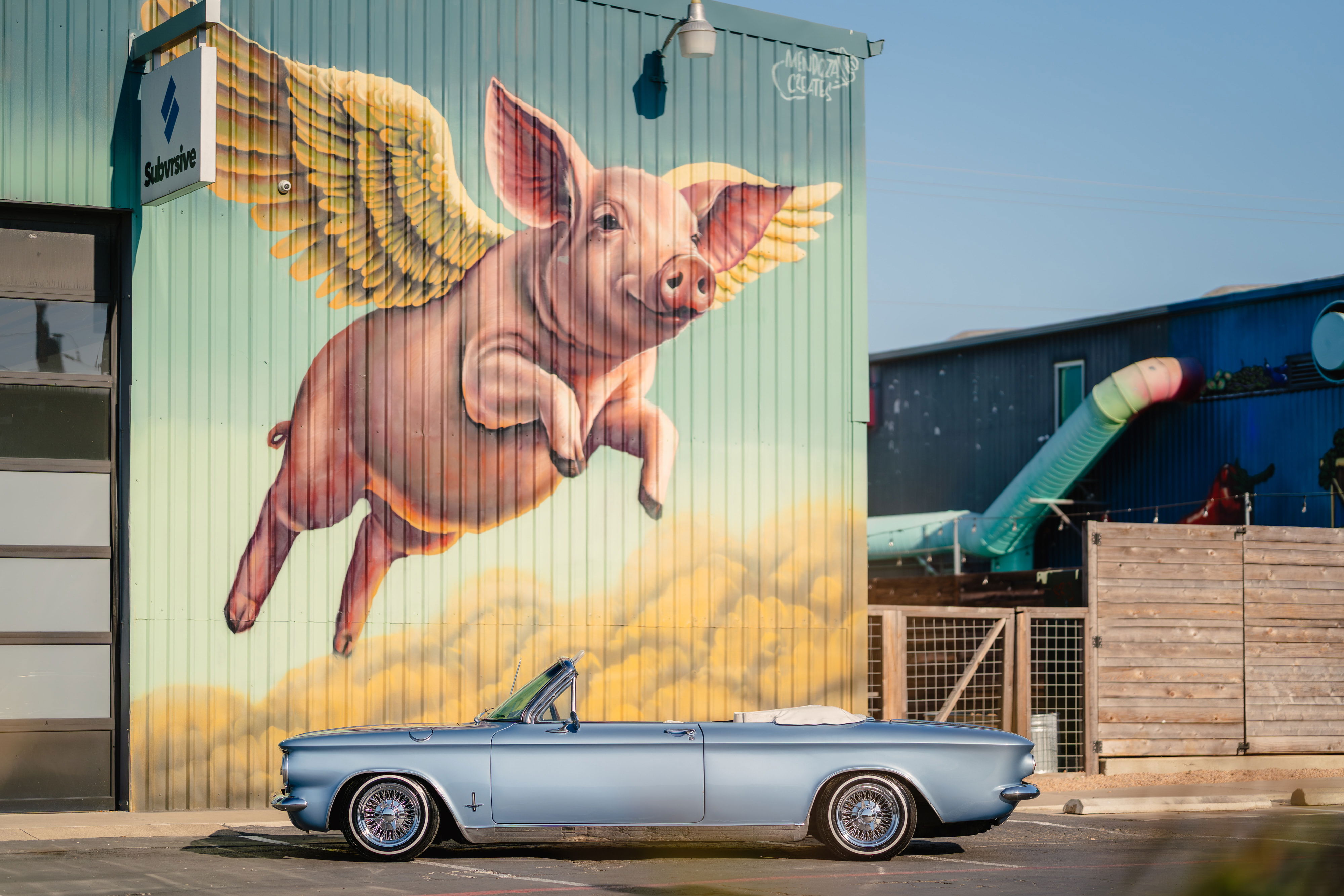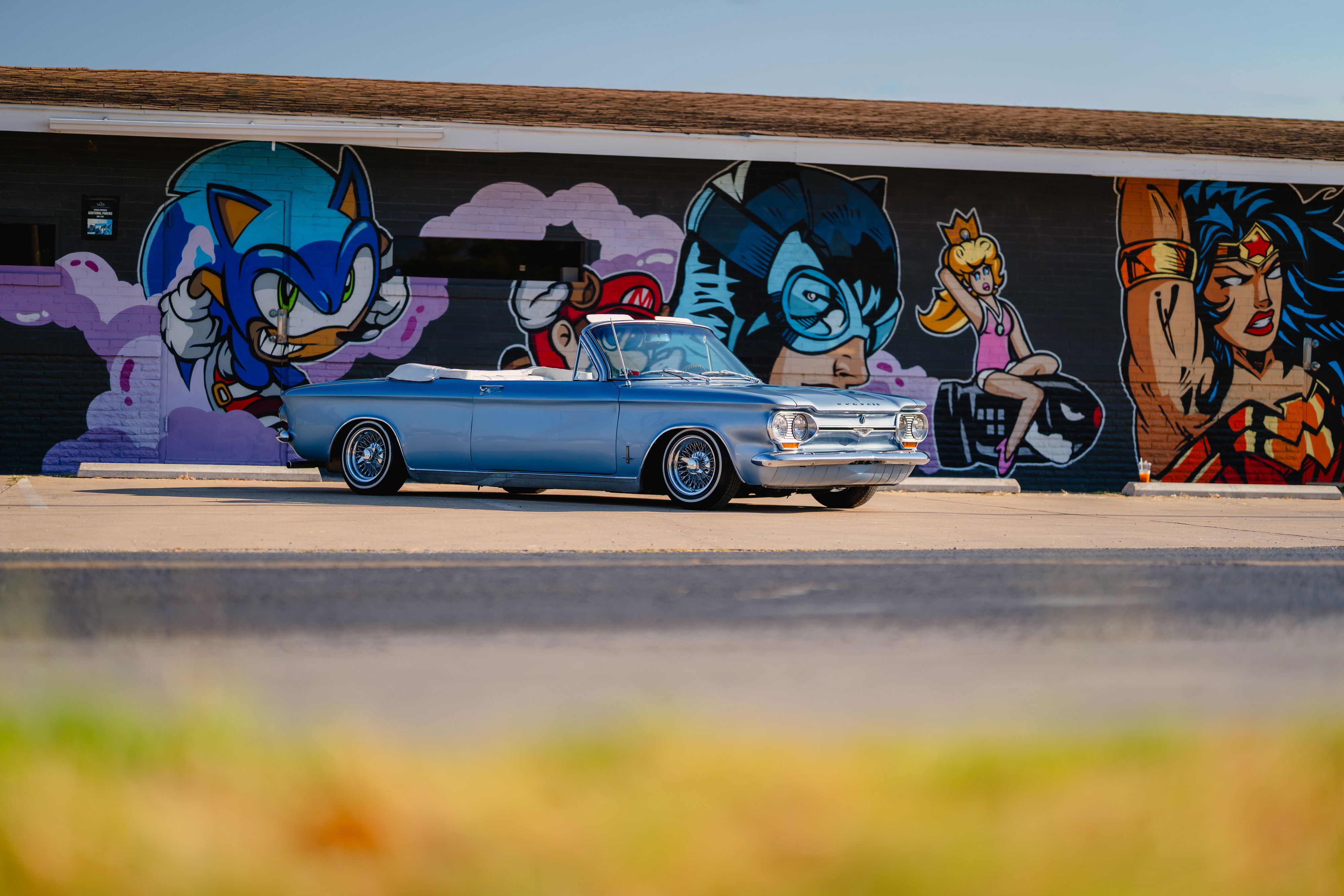 The owner’s wife contacted me about a Father’s Day gift: a fun shoot with his prized 1966 Chevrolet Corvair. We landed on shooting around the St. Elmo area with all it’s art. It ended up being a perfect choice. The classic look combined with the modern art was lovely.